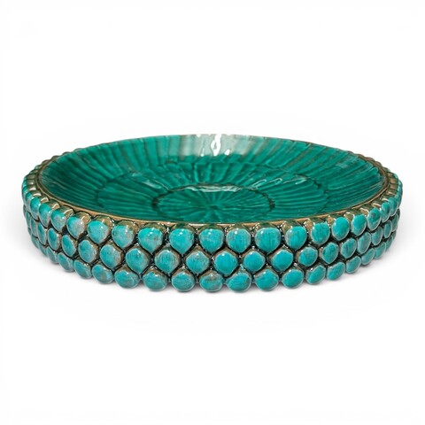 Acquistando questo centrotavola non porti a casa solo un oggetto, ma un'esperienza sensoriale e un investimento in bellezza. Beneficerai di un pezzo di design esclusivo che eleverà istantaneamente lo stile della tua casa o del tuo ufficio, diventando il punto focale di ogni conversazione. Porterai nella tua vita il potente simbolo della pigna siciliana, un augurio di prosperità e benessere per te e la tua famiglia. Inoltre, diversi studi sulla psicologia del colore confermano che le tonalità del verde acqua hanno un effetto calmante sulla mente, contribuendo a creare un'atmosfera di relax e armonia. Stai scegliendo un prodotto etico e sostenibile, che supporta l'antica arte delle ceramiche siciliane e i suoi maestri artigiani. Non trovi che questi siano vantaggi meravigliosi per arricchire la tua casa e il tuo spirito?