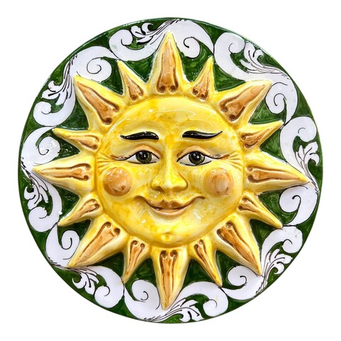 Immagina un tocco di Sicilia nella tua casa, un'esplosione di colori e tradizione che cattura lo sguardo. Desideri un pezzo unico che parli di te e della tua passione per l'artigianato? Questo sole in ceramica di Caltagirone è la risposta.